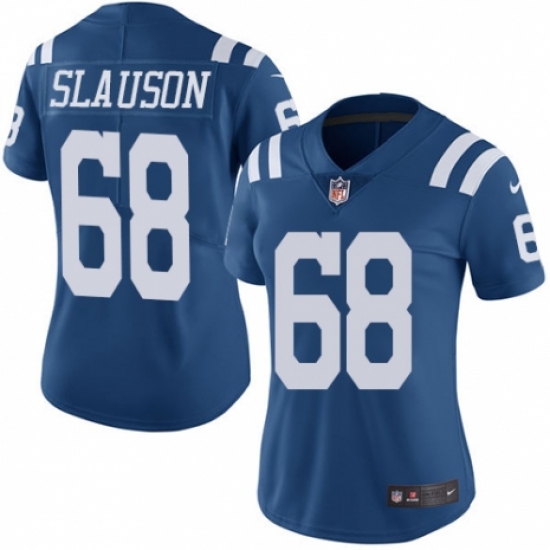 Women's Nike Indianapolis Colts #68 Matt Slauson Limited Royal Blue Rush Vapor Untouchable NFL Jersey