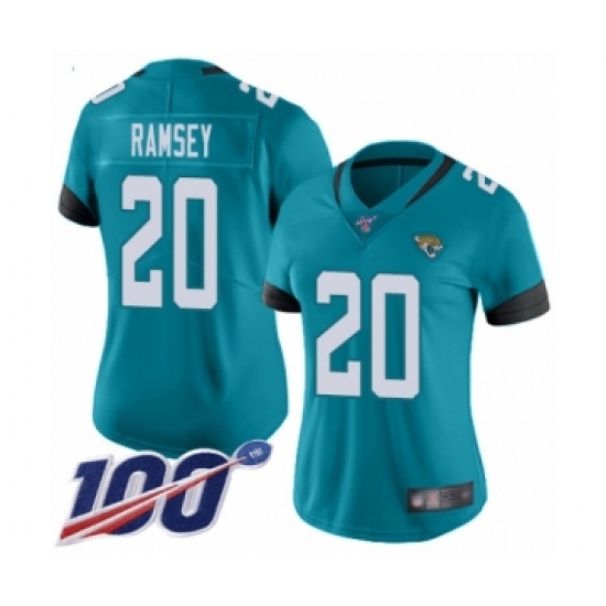 >Women's Nike Jacksonville Jaguars #20 Jalen Ramsey Teal Green Alternate Vapor Untouchable Limited Player 100th Season NFL Jersey