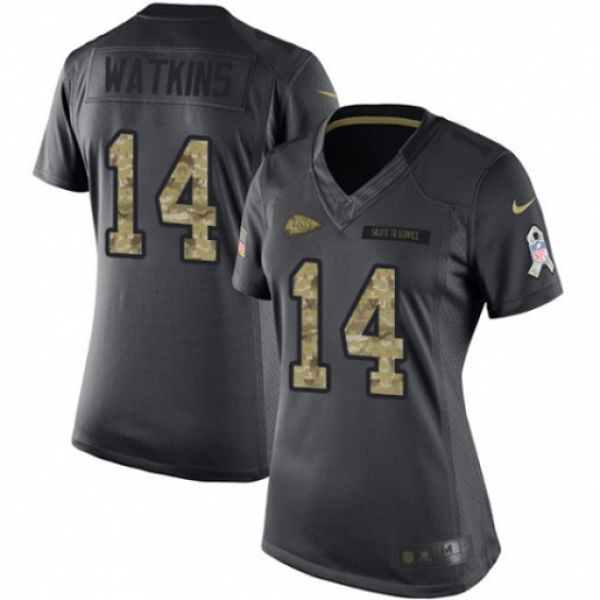 >Women's Nike Kansas City Chiefs #14 Sammy Watkins Limited Black 2016 Salute to Service NFL Jersey
