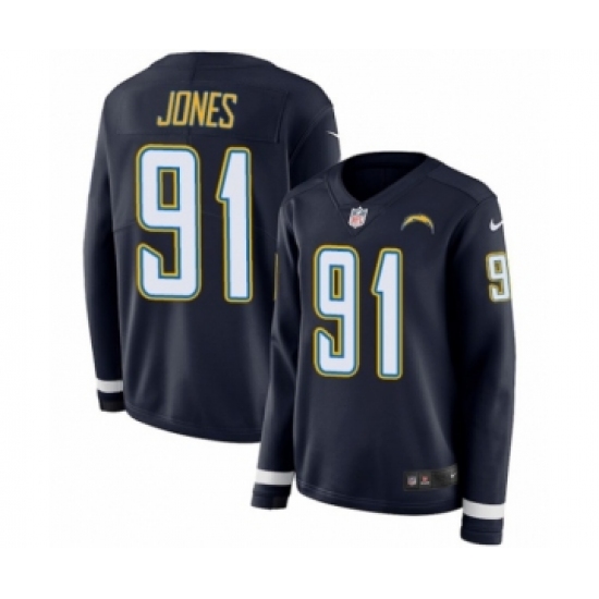 Women's Nike Los Angeles Chargers #91 Justin Jones Limited Navy Blue Therma Long Sleeve NFL Jersey