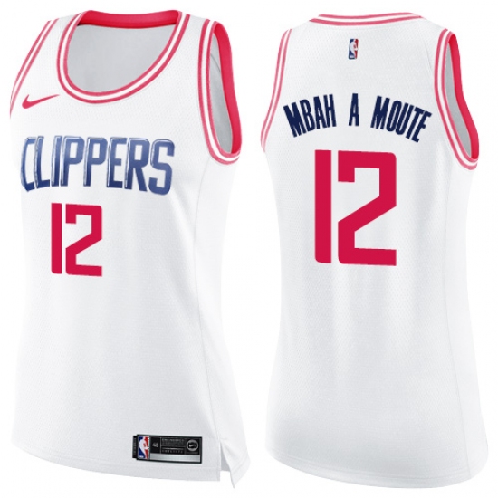 Women's Nike Los Angeles Clippers #12 Luc Mbah a Moute Swingman White Pink Fashion NBA Jersey