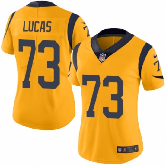 >Women's Nike Los Angeles Rams #73 Cornelius Lucas Limited Gold Rush Vapor Untouchable NFL Jersey
