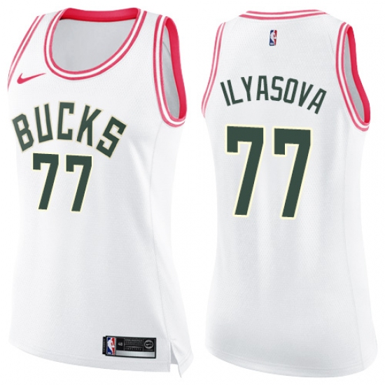 Women's Nike Milwaukee Bucks #77 Ersan Ilyasova Swingman White Pink Fashion NBA Jersey