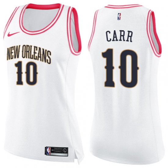 Women's Nike New Orleans Pelicans #10 Tony Carr Swingman White Pink Fashion NBA Jersey