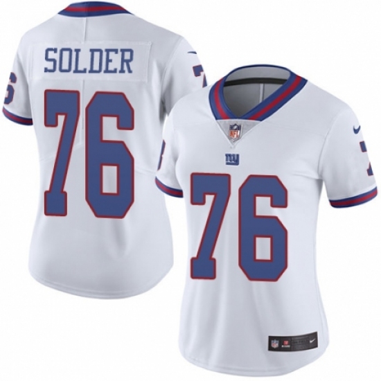 >Women's Nike New York Giants #76 Nate Solder Limited White Rush Vapor Untouchable NFL Jersey