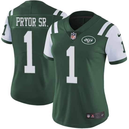 Women's Nike New York Jets #1 Terrelle Pryor Sr. Green Team Color Vapor Untouchable Limited Player NFL Jersey