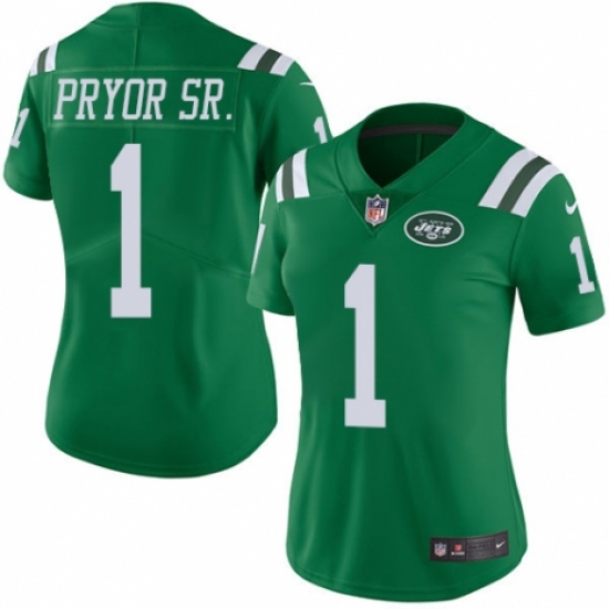 >Women's Nike New York Jets #1 Terrelle Pryor Sr. Limited Green Rush Vapor Untouchable NFL Jersey
