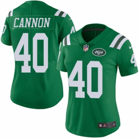 >Women's Nike New York Jets #40 Trenton Cannon Limited Green Rush Vapor Untouchable NFL Jersey