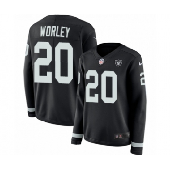 >Women's Nike Oakland Raiders #20 Daryl Worley Limited Black Therma Long Sleeve NFL Jersey