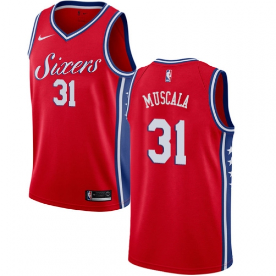 >Women's Nike Philadelphia 76ers #31 Mike Muscala Swingman Red NBA Jersey Statement Edition