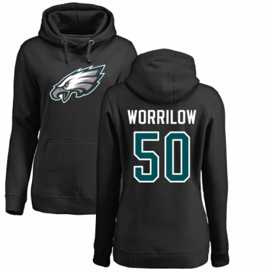 >Women's Nike Philadelphia Eagles #50 Paul Worrilow Black Name & Number Logo Pullover Hoodie