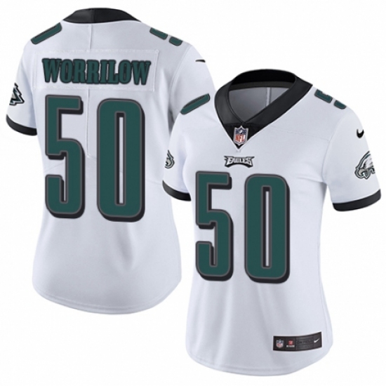 >Women's Nike Philadelphia Eagles #50 Paul Worrilow White Vapor Untouchable Limited Player NFL Jersey