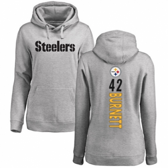 >Women's Nike Pittsburgh Steelers #42 Morgan Burnett Ash Backer Pullover Hoodie