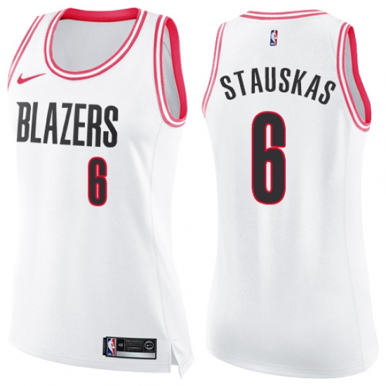 Women's Nike Portland Trail Blazers #6 Nik Stauskas Swingman White Pink Fashion NBA Jersey