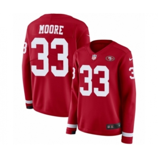 >Women's Nike San Francisco 49ers #33 Tarvarius Moore Limited Red Therma Long Sleeve NFL Jersey