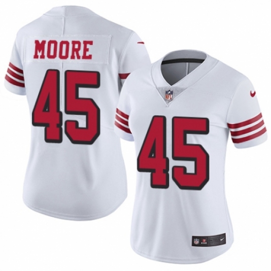 >Women's Nike San Francisco 49ers #45 Tarvarius Moore Limited White Rush Vapor Untouchable NFL Jersey