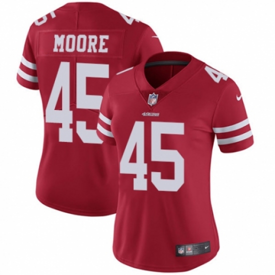 >Women's Nike San Francisco 49ers #45 Tarvarius Moore Red Team Color Vapor Untouchable Limited Player NFL Jersey