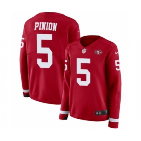 >Women's Nike San Francisco 49ers #5 Bradley Pinion Limited Red Therma Long Sleeve NFL Jersey