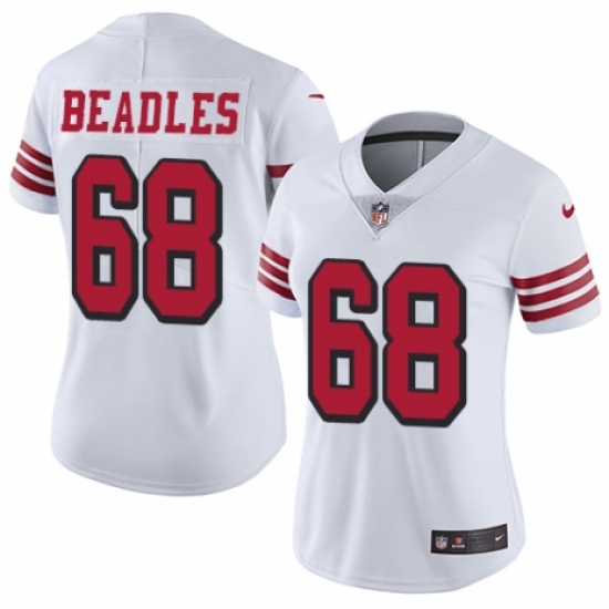 >Women's Nike San Francisco 49ers #68 Zane Beadles Limited White Rush Vapor Untouchable NFL Jersey
