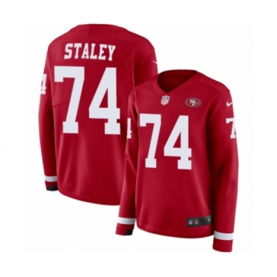 Women's Nike San Francisco 49ers #74 Joe Staley Limited Red Therma Long Sleeve NFL Jersey