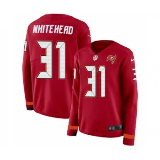 >Women's Nike Tampa Bay Buccaneers #31 Jordan Whitehead Limited Red Therma Long Sleeve NFL Jersey