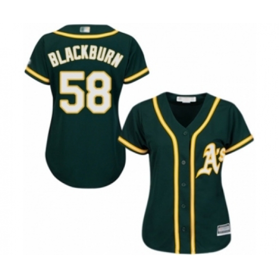 >Women's Oakland Athletics #58 Paul Blackburn Authentic Green Alternate 1 Cool Base Baseball Player Jersey
