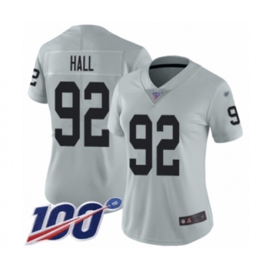 Women's Oakland Raiders #92 P.J. Hall Limited Silver Inverted Legend 100th Season Football Jersey