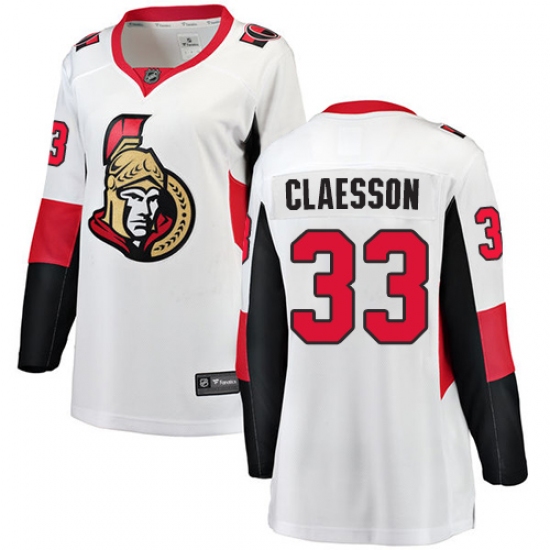 Women's Ottawa Senators #33 Fredrik Claesson Fanatics Branded White Away Breakaway NHL Jersey
