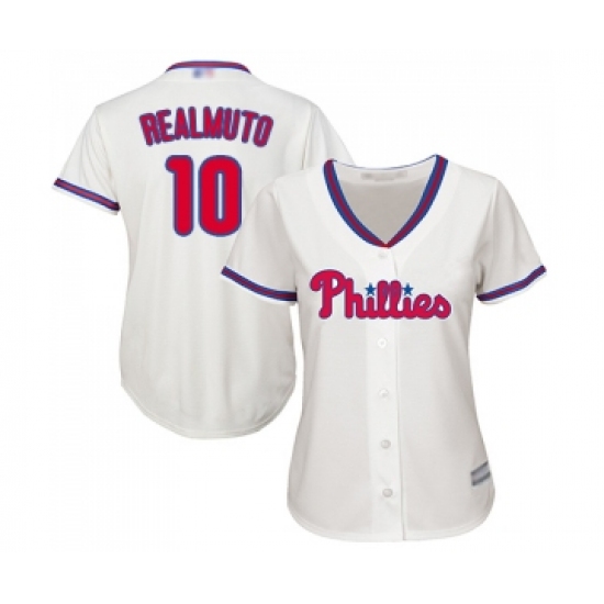 Women's Philadelphia Phillies #10 J. T. Realmuto Replica Cream Alternate Cool Base Baseball Jersey