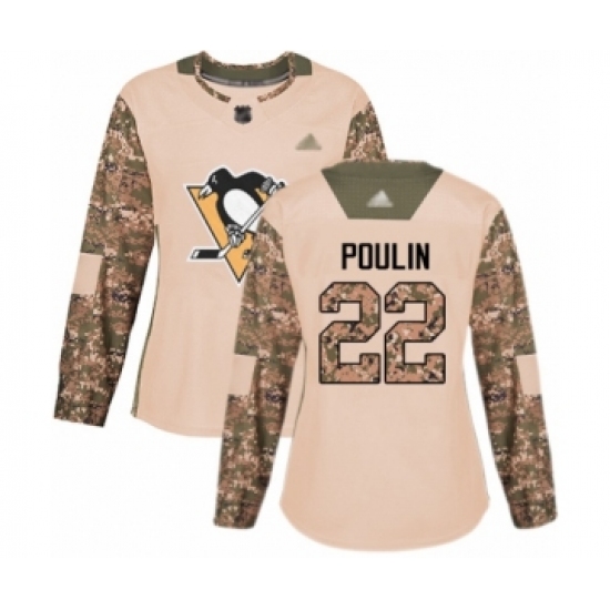 Women's Pittsburgh Penguins #22 Samuel Poulin Authentic Camo Veterans Day Practice Hockey Jersey