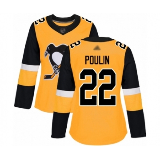 >Women's Pittsburgh Penguins #22 Samuel Poulin Authentic Gold Alternate Hockey Jersey