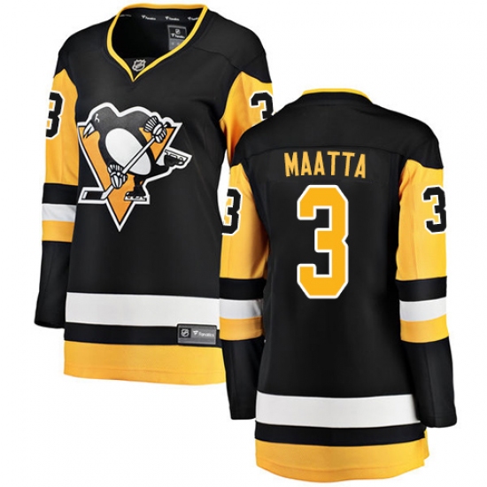 Women's Pittsburgh Penguins #3 Olli Maatta Fanatics Branded Black Home Breakaway NHL Jersey