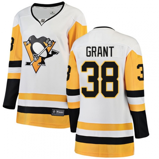 >Women's Pittsburgh Penguins #38 Derek Grant Authentic White Away Fanatics Branded Breakaway NHL Jersey