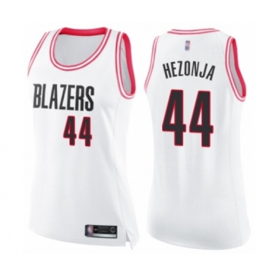>Women's Portland Trail Blazers #44 Mario Hezonja Swingman White Pink Fashion Basketball Jersey