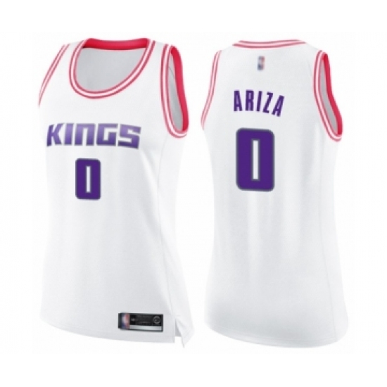 >Women's Sacramento Kings #0 Trevor Ariza Swingman White Pink Fashion Basketball Jersey