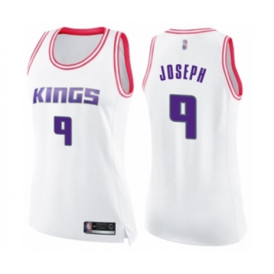 >Women's Sacramento Kings #9 Cory Joseph Swingman White Pink Fashion Basketball Jersey