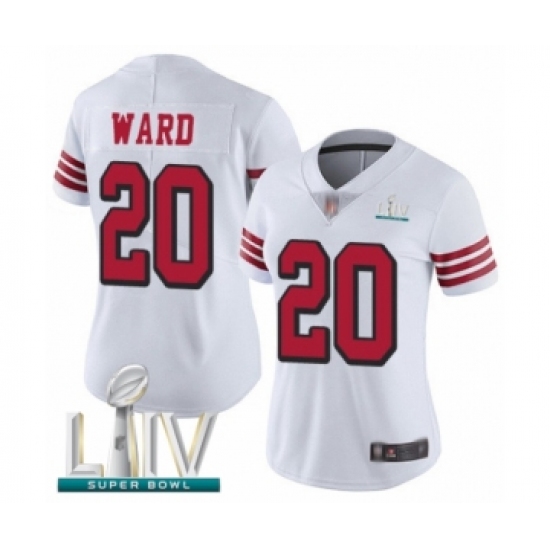 >Women's San Francisco 49ers #20 Jimmie Ward Limited White Rush Vapor Untouchable Super Bowl LIV Bound Football Jersey