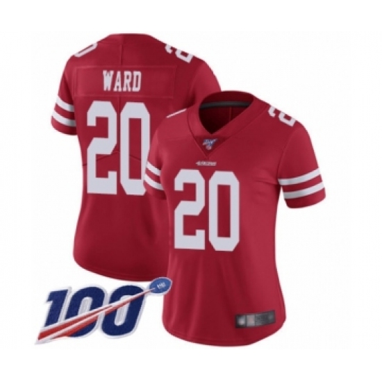 >Women's San Francisco 49ers #20 Jimmie Ward Red Team Color Vapor Untouchable Limited Player 100th Season Football Jersey