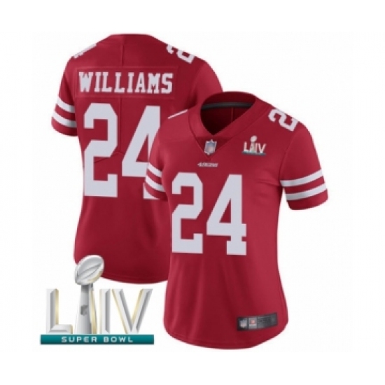 >Women's San Francisco 49ers #24 K'Waun Williams Red Team Color Vapor Untouchable Limited Player Super Bowl LIV Bound Football Jersey