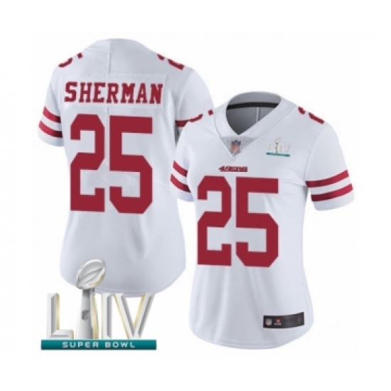 >Women's San Francisco 49ers #25 Richard Sherman White Vapor Untouchable Limited Player Super Bowl LIV Bound Football Jersey