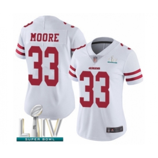 >Women's San Francisco 49ers #33 Tarvarius Moore White Vapor Untouchable Limited Player Super Bowl LIV Bound Football Jersey
