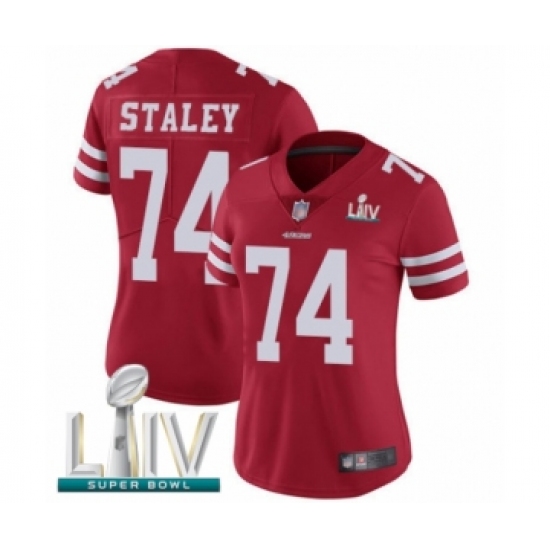 >Women's San Francisco 49ers #74 Joe Staley Red Team Color Vapor Untouchable Limited Player Super Bowl LIV Bound Football Jersey