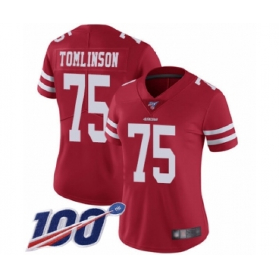 Women's San Francisco 49ers #75 Laken Tomlinson Red Team Color Vapor Untouchable Limited Player 100th Season Football Jersey