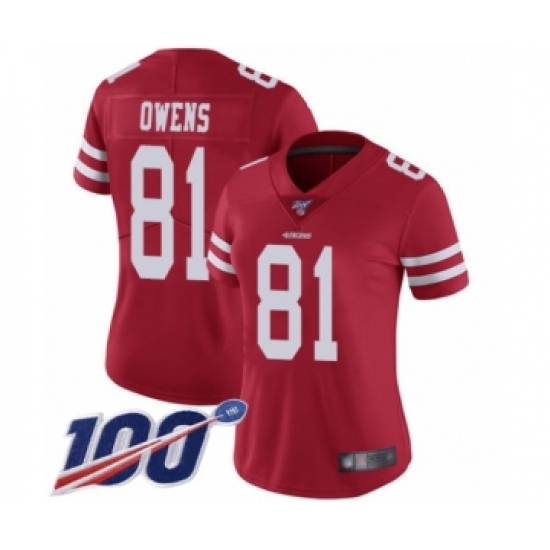 Women's San Francisco 49ers #81 Terrell Owens Red Team Color Vapor Untouchable Limited Player 100th Season Football Jersey