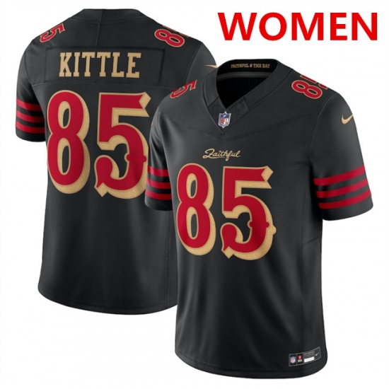>Women's San Francisco 49ers #85 George kittle Black 2025 F.U.S.E. “Rivalries” Vapor Limited Stitched Football Jersey(Run Small)