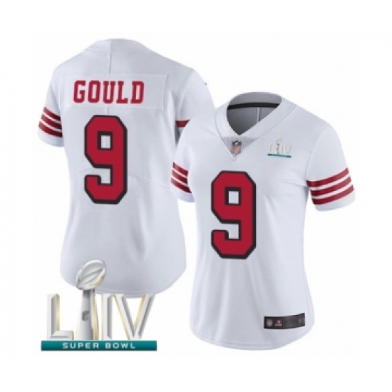 >Women's San Francisco 49ers #9 Robbie Gould Limited White Rush Vapor Untouchable Super Bowl LIV Bound Football Jersey