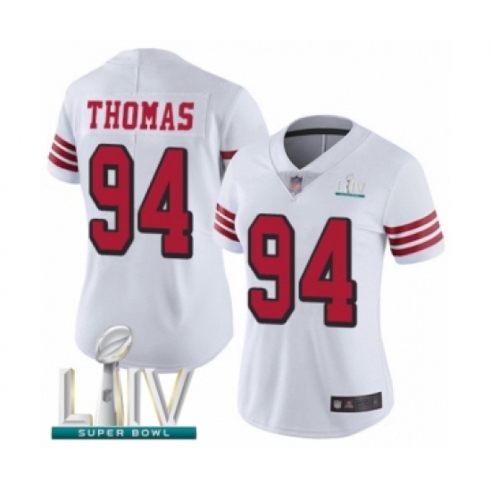 Women's San Francisco 49ers #94 Solomon Thomas Limited White Rush Vapor Untouchable Super Bowl LIV Bound Football Jersey