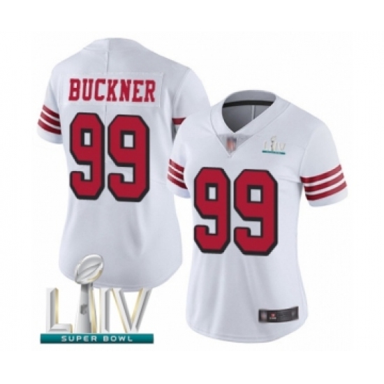 >Women's San Francisco 49ers #99 DeForest Buckner Limited White Rush Vapor Untouchable Super Bowl LIV Bound Football Jersey
