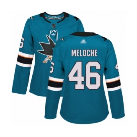 Women's San Jose Sharks #46 Nicolas Meloche Authentic Teal Green Home Hockey Jersey