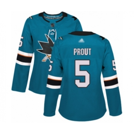 >Women's San Jose Sharks #5 Dalton Prout Authentic Teal Green Home Hockey Jersey